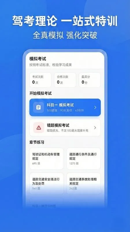 驾考科目一路通提供理论全真模拟突破强化练习。