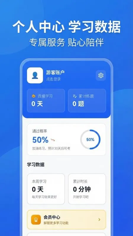 可在个人中心了解学习数据,还能直接预约考试,一站式办理驾考,十分便捷。