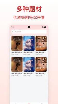 软件界面简洁且分类清晰,按照题材、更新时间等维度展示内容,还支持搜索功能,能帮你快速定位想看的短剧,让热门短剧一目了然,轻松找到心仪剧集。