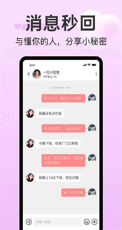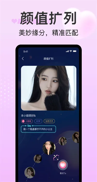 探心陌聊开启全新玩法,带来真实附近交友体验。在这里可以丢个瓶子分享生活趣事,说不定就能与有缘人奇妙相遇。同在一座城,何必不见面,附近真实交友轻松实现。情侣见证功能能记录从相识到相恋的点滴成长。在线匹配后可大胆表白,探索对方内心,寻找合适的灵魂伴侣。还有详尽的用户资料介绍,能立即热聊开启甜蜜相遇。生活动态表达自我无限制,吐槽发泄也毫无压力。通过颜值匹配,左右滑动,双方互相喜欢即可开聊。而且新版特性还优化了UI界面,让交友过程更加舒适便捷,快来探心陌聊寻找你的交友乐趣吧。