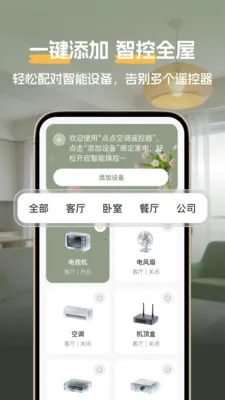 点点空调遥控器(手机万能遥控器)告别一堆遥控器的烦恼!本应用让手机化身全能遥控,无论是传统红外电器还是智能Wi-Fi设备,均可一键集成轻松操控,从此尽享智慧生活的便捷。新版特性1修复已知BUG。2优化用户使用体验。有了它,再也不用为寻找各种遥控器而发愁。不管家中电器是通过红外还是Wi-Fi连接,都能在手机上轻松实现控制。一键集成的功能让操作变得极其简单,轻松上手。修复已知BUG以及优化用户使用体验,更是提升了整个使用过程的流畅性和舒适度。让你随时随地都能便捷地操控各类电器,尽情享受智慧生活带来的便利,真正体验到科技为生活带来的轻松与美好。
