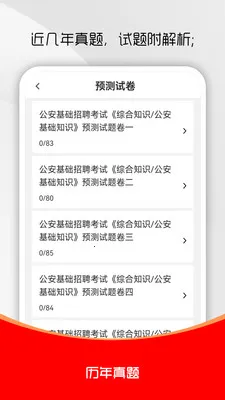 公安基础知识刷题库专为辅警备考打造,含公安协警、辅警等考试相关内容,有全国 20 多个省市真题。具备章节练习、历年真题、模拟押题等功能,高频考点易错点一网打尽,错题可收藏,还有押题时政更新。