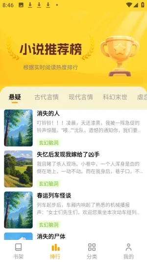 天天追小说排行榜单多样,涵盖男女频,助用户把握流行趋势。