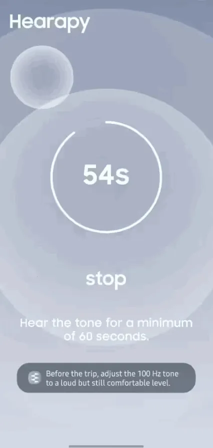 Hearapy安卓版通过100赫兹音频缓解晕车症状,无需药物。操作高效便捷简单,界面极简无广告。实测无需联网,随时随地可用。最多两小时内缓解晕动症不适,双耳耳机、音量适中效果更佳,出发前听1分钟,上车后不晕。