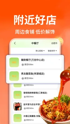 3. 智能推荐:按距离智能排序,快速找到周边食铺。