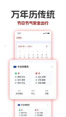 万年历老黄历吉历是集成公历、农历、干支历等多套历法的时间查询工具,含黄历宜忌、节假日等功能。能查核心历法,标识节假日节气,显示每日宜忌、时辰吉凶,还提供天气、星象运势等,新版已上线。