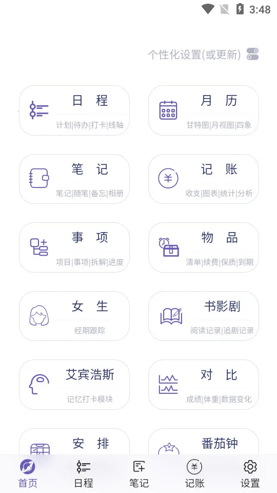 3. 个性化定制:提供多种个性化设置选项,如主题风格、界面布局、提醒方式等,满足不同审美和使用习惯。