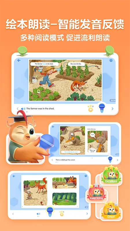 洪恩分级阅读由洪恩与牛津大学出版社联袂打造,是专为中国儿童设计面向非母语读者的英文分级阅读App。它基于用户英文阅读能力、兴趣及认知水平定制专属阅读规划,阅读中提供相应支持引导,助孩子成为英文自主阅读者。有全牛津分级绘本馆,1000牛津原版绘本、18个系列、24个人文与科普主题,含8个系列300牛津阅读树,14个级别平滑梯度。牛津专家深度赋能,官方权威测评体系评估孩子阅读能力,智能推荐引擎定制专属规划,阅读锦囊趣味相伴锻炼思维能力,每本绘本配三种出声朗读模式及智能纠音。快来下载洪恩分级阅读2026,开启孩子英文阅读成长之旅。