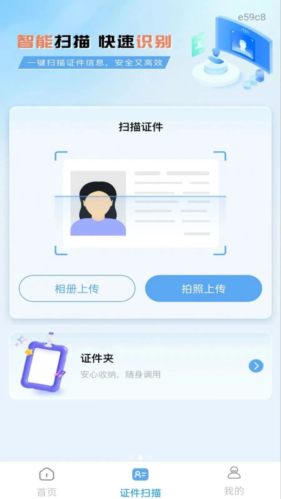 2. 证件扫描全涵盖,身份证、户口本等多种证件类型,两种上传方式,一键提取信息。