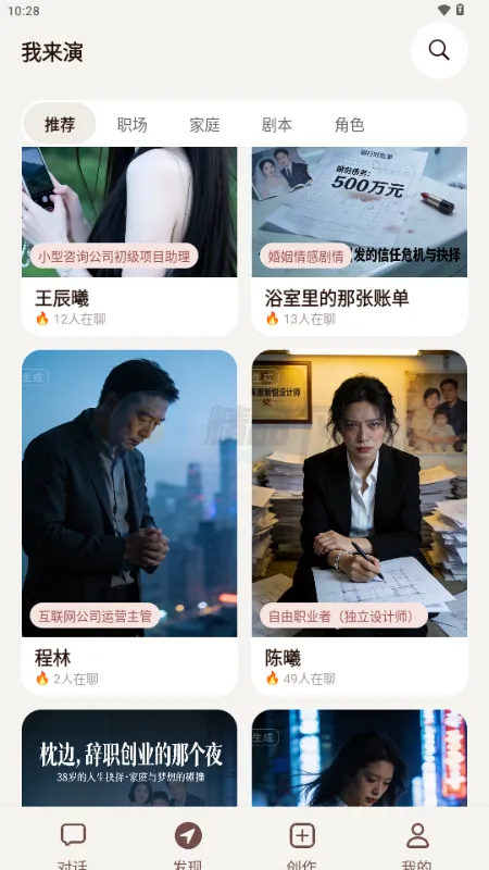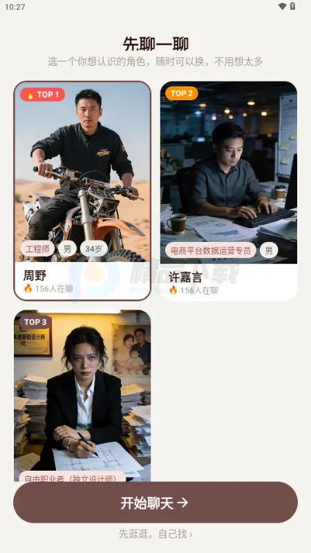 3、软件首页可便捷选择角色或剧本,轻松进入剧情对话页面。