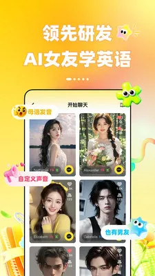 1. 沉浸式AI伴侣陪伴:能自由选择契合的AI形象,享受真实对话体验,每次对话自然且有温度,让学英语变得轻松有趣。