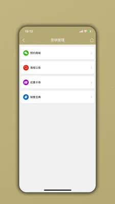 营销管理功能丰富,有优惠卡券、定向发放、抢领发放、预约商城、活动公告等,助力店铺推广。