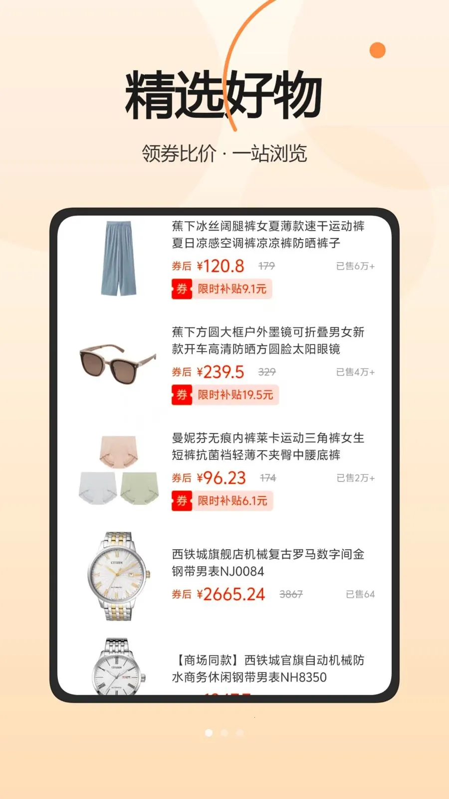 2、通过分类切换,可浏览不同类目的优惠商品信息。