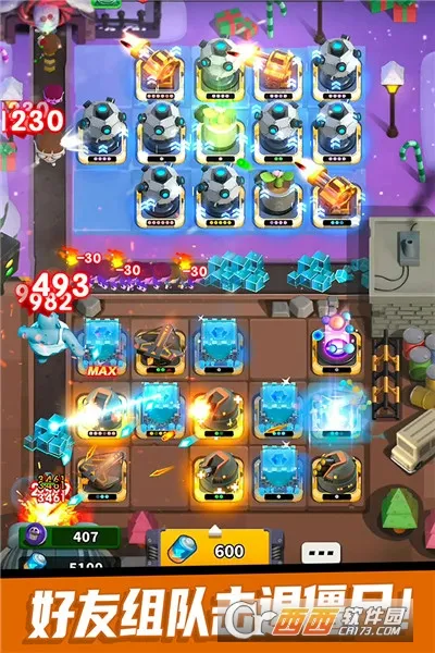 4、突破传统塔防局限,采用动态变换塔防机制与绚丽攻击特效,结合科技感十足的视觉风格。