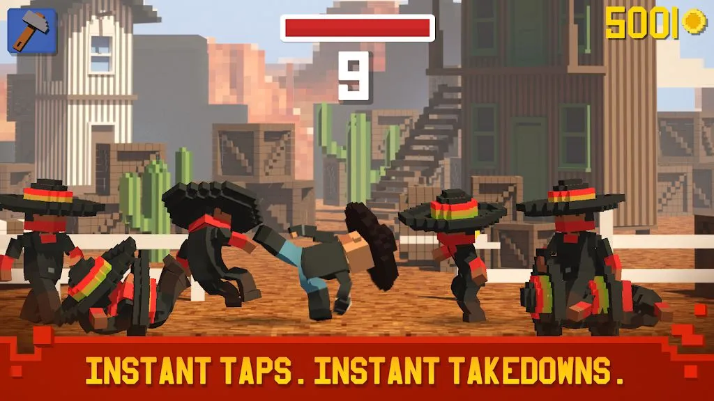 2. 快节奏点击战斗:与不法之徒、强盗、忍者等展开快节奏的点击战斗,精准把握时机,干净利落打击敌人,一出现就立刻击倒。