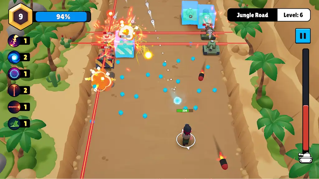 战争砖块是一款紧张刺激的快节奏动作射击游戏。玩家需在不断涌现的敌军前保持冷静精准,游戏画面简洁却冲击力十足,操作流畅自然,带来高强度战斗体验。每轮战斗充满挑战,敌人数量和种类渐增,对玩家反应速度和战术部署要求更高。玩家主要任务是坚守阵地,面对无穷敌人浪潮,每个波次更具挑战,敌人攻击方式和阵型各异,迫使玩家不断调整战术,锁定目标装弹上膛成为制胜关键,精准枪法和合理资源管理决定能否存活。游戏设有丰富升级和强化系统,通过完成挑战获取资源提升装备性能,多样武器强化,独特技能树可调整战斗风格。操作简洁但策略深度丰富,界面干净无繁杂按键,新手易上手,关卡重玩价值高,难度循序渐进,满足不同玩家需求。每次战斗敌人类型和攻击模式多变,玩家要灵活适应,后期挑战严峻,需优化技巧和战术搭配,合适升级策略和资源分配是关键。战争砖块集生存射击与策略于一体,带来无与伦比的紧迫感和满足感,是动作射击和塔防元素玩家的理想选择,你能在战场上坚持多久,书写怎样的传奇呢?