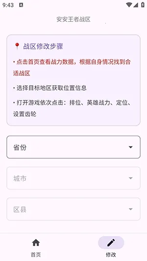 1、精准定位热门地区:玩家可通过内置地图或搜索功能,将游戏战区修改至如西藏、新疆、内蒙古等省份的偏远县市,这些地区竞争温和,助您轻松上榜。
