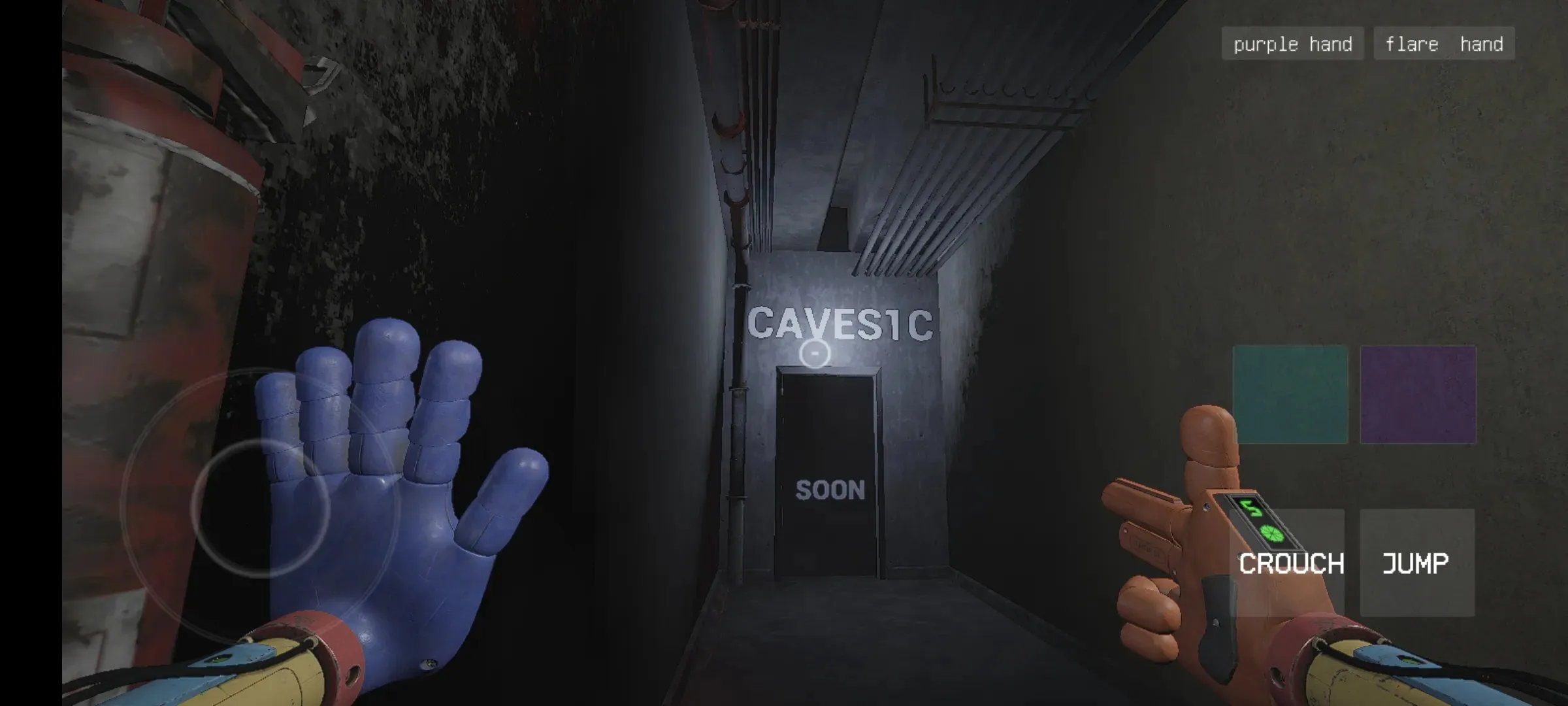 2、独特解谜玩法:围绕抓抓背包展开,通过蓝手导电、红手抓取破解电路颜色密码等谜题,全程无战斗,需躲避巨型玩偶追击逃生。