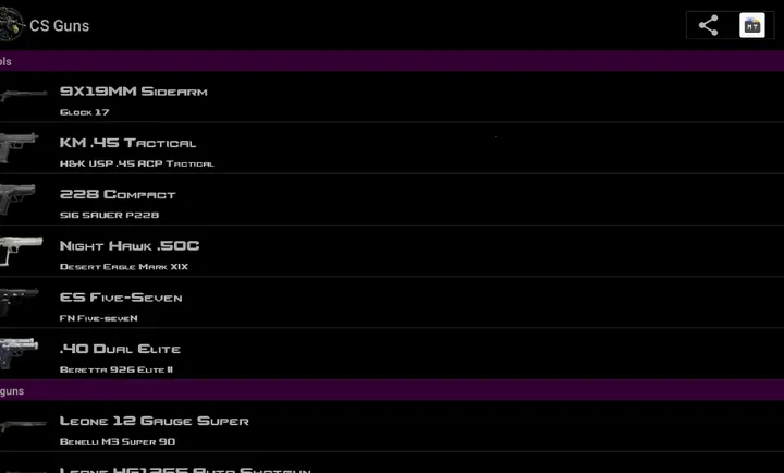 3、可全面了解 CS 枪支。