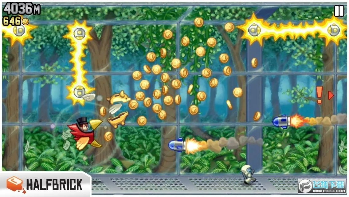 疯狂喷气机正版下载,一款集跑酷与射击为一体的游戏。玩家操控角色飞行,躲避障碍击杀外星人,玩法简单。点击屏幕控制上升,随游戏进度难度增加,还有多种特色玩法、道具及隐藏成就等你体验。