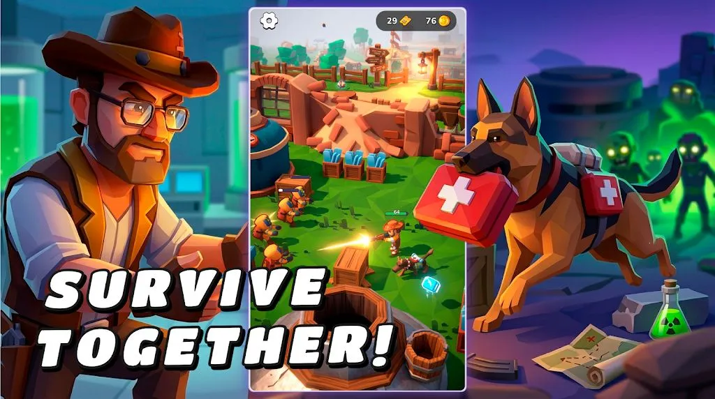 最后防线Z是一款生存游戏,融合世界探索、射击与收集。在废土杀丧尸,解锁新区域,收集资源,可自动化采集,用材料进步,高级会员还能得宠物伙伴,带你揭开世界秘密。