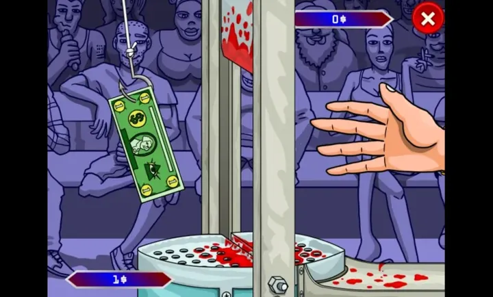在拿钱模拟器中,您能在不砍断手的情况下获取现金。拿钱模拟器第三季回归啦!您正参与一个游戏节目,有机会成为千万富翁,要做的就是拿钱。听起来简单,实则不然。将双手放在锋利断头台之间,快速拿取现金并在其掉落前收回手,这抢钱游戏可不轻松。您有两次尝试机会,分别用右手和左手,尽可能多抓钱积累现金。现在还能玩额外回合建立自己的银行,别只满足于 100 万,继续前进,直到没牌可拿。随着前进,断头台刀片切割速度越来越快,所以要快且把握时机。成为百万富翁虽好,但手无寸铁的百万富翁可不好。是时候面对恐惧了,这种疯狂的百万富翁手无寸铁游戏不适合胆小之人,适合想玩有趣游戏的人。