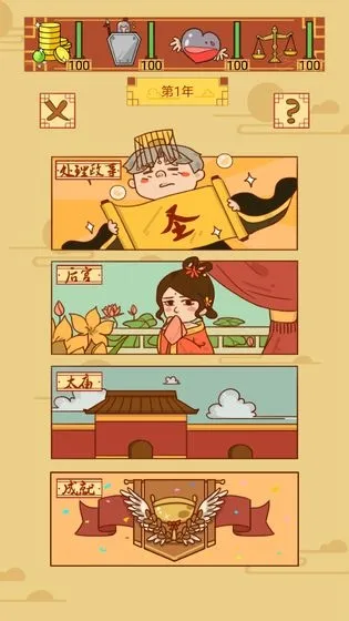 皇上你好蔡啊2025官方最新版本是古风宫廷模拟经营手游。玩家扮演皇帝,处理政务、选妃育儿。玩法简单,维持四项数值不低于0即可。有上百种剧情、奇葩结局,还有丰富成就等你解锁,魔性搞笑又有趣 。