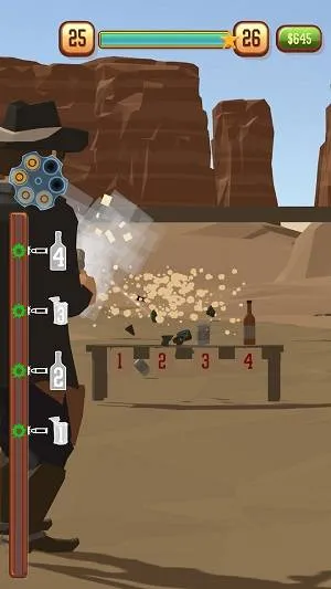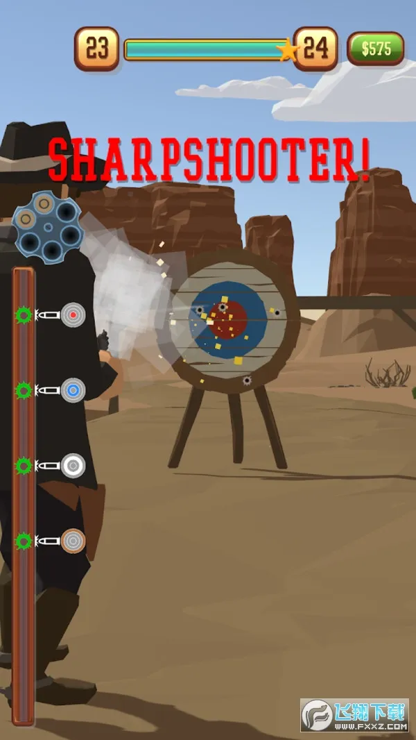 狂野西部枪战(牛仔枪战射击)是一款以西部牛仔为主题的射击游戏。玩家在游戏里扮演惩恶扬善的牛仔,与多个坏人展开对决。这里有真正的西部牛仔对决,关卡难度超高,极具挑战性。在游戏中,玩家能体验狂野的西部世界,使用左轮枪消灭敌人。每个关卡都精彩万分,需熟练运用各种武器枪支来彰显实力。目标是成为西部牛仔中最亮眼的那个。玩家可在战斗里击败所有挑战者,提升自身属性。在这刺激的射击游戏里,玩家能尽情释放激情,根据不同场景和敌人制定策略,感受独特的西部风情。