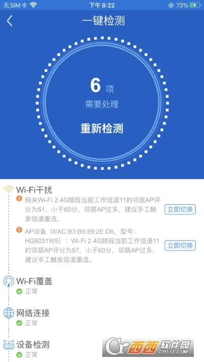 2. 一键检测超便捷:为智能网关提供一键检测功能,可快速了解Wi-Fi网络状态,依建议调整配置。