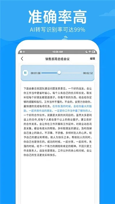 3. 采用AI录音识别转录技术,快速无损将录音音频转化为高质量文稿。