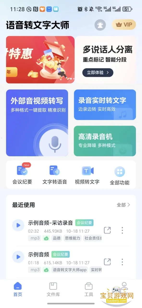 4. 支持视频转文字、文字转语音、外部录音转文字、专业录音机等功能。