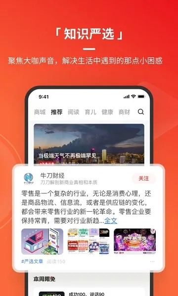 2. **专注知识严选**:专业编辑梳理碎片内容,聚焦大咖声音、媒体事实热点,解决信息爆炸下的困惑。