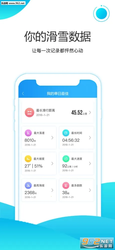 3. 轨迹记录:记录滑行里程,留下珍贵滑行档案,是滑雪必备助手。