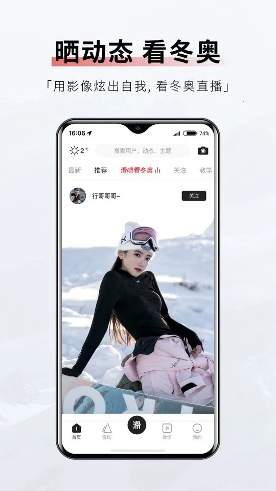 2. 实时的雪场交友通过滑呗,可以在雪场发现最有趣的雪友,最知名的达人,并邀约他们一起开心滑雪。