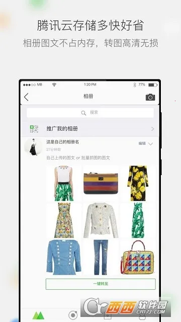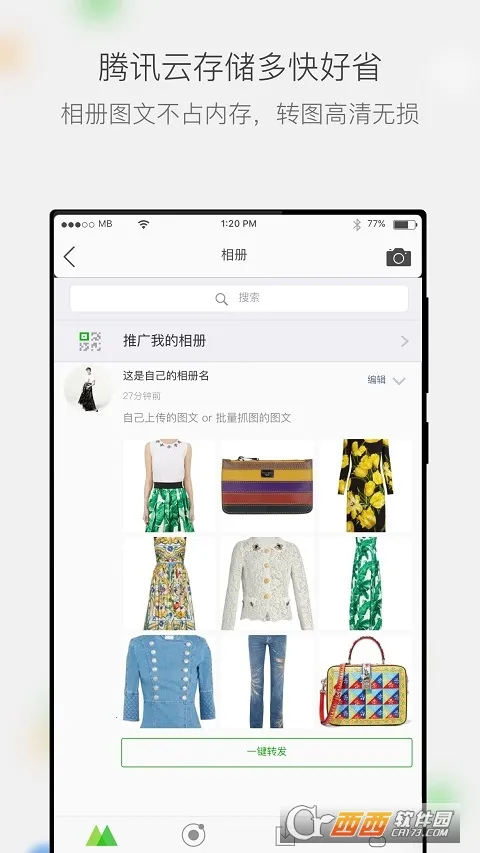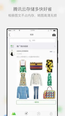 腾讯云存储超省心,相册内容存储于此,不占手机空间,转发高清图无损耗,实现移动端图文共享与转发。