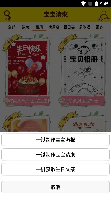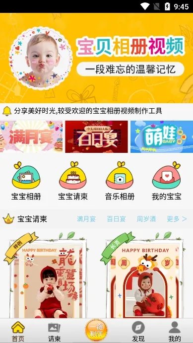 1. 海量模板:提供宝宝生日宴、百日宴、满月宴、周岁酒等多种相册样式的海量模板,任由用户挑选。