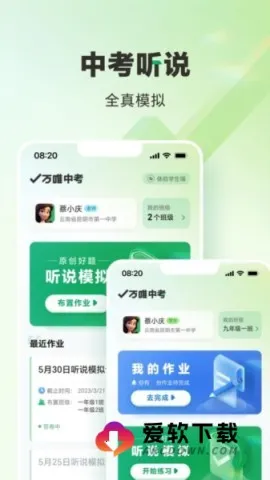 1. 专为中考学生设计,提供题库模拟考试学习功能,支持听说模拟,能帮学生巩固知识,反馈学习情况,查漏补缺,提升成绩。