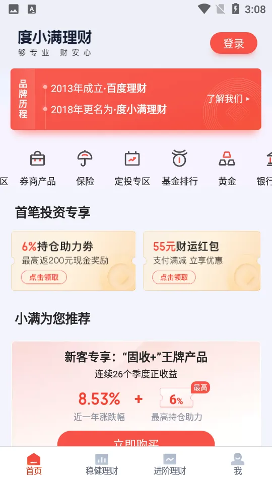 度小满理财是度小满金融旗下专业化理财平台,原名百度理财。提供多元化产品,有贴心服务、精选理财,风控严格。涵盖活期、定期、基金等理财方式,收益稳定风险可控,安全运营近5年,本息兑付率100%。