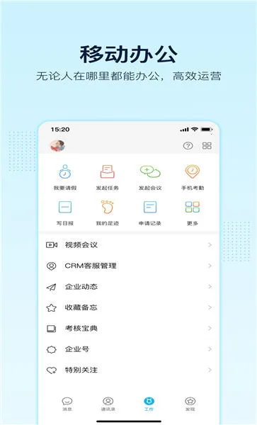 4. 支持移动办公,无论何地都能高效运营,企业通讯消息必达。