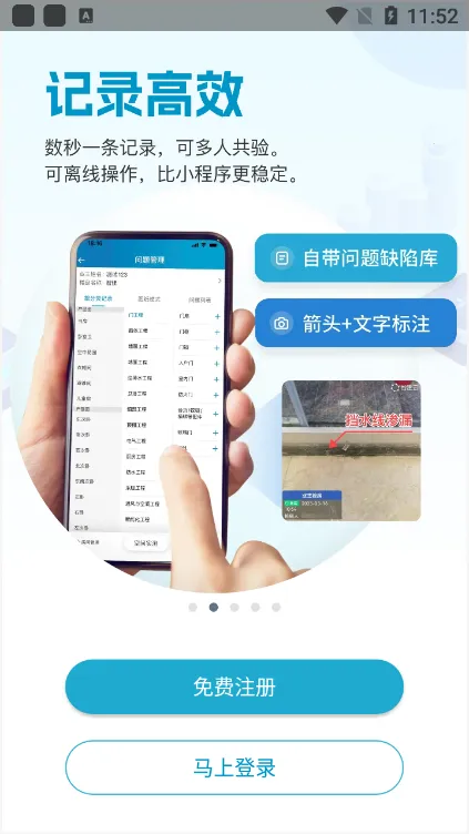 移动验房2026官方正版是智建云专为验房公司验房师研发的验房软件和在线生成电子验房报告系统,涵盖业主验房、装修监理、节点验收等应用。它能进行线上检查管理服务,还有高效的离线管理服务。提供专检、模拟验房、正式交付等功能服务,极大提高工作效率,还有很多专业功能可解锁,帮助用户掌握更多验房技能,为建筑行业专业人士提供办公服务,让员工随时在线办公。交付前可对公共区域检查,细化区域和内容确保产品质量;入户检查房屋质量问题并闭环管理,确保交付质量、控制风险。其特色众多,行业领先的专业电子验房报告,问题分类统计、自动引用规范、严重问题识别,现场报告优于手写报告;高效录音且离线使用,几秒钟记录可多人共享,比小程序更稳定;自动生成巡检海报辅助营销;质量分数体现专业精神引导业主传播信息;支持问题整改和复检并生成报告,整改有闭环让业主放心满意。