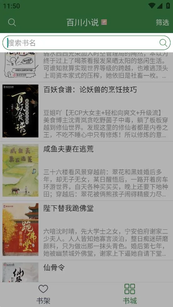 百川小说提供海量小说阅读资源,界面简洁功能全,资源每日更新。支持免费阅读、下载缓存,可依阅读习惯设置背景颜色和字体。还有听书功能,无广告干扰,能满足多样阅读需求。
