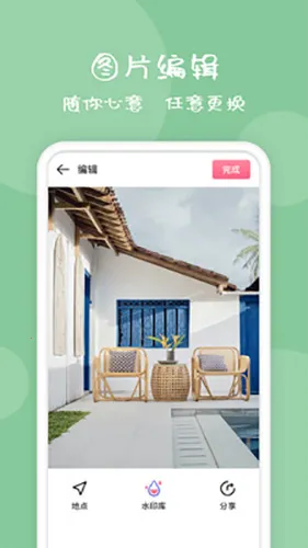 2. 智能定位系统:自动检测位置,可手动更改拍照地点。