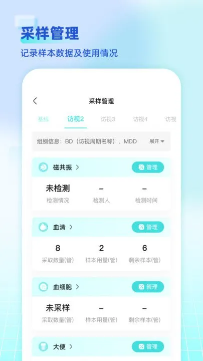 1. 高效数据检索:支持关键词搜索、时间范围筛选及多条件组合查询,能快速定位所需患者信息,如快速找到近一个月内血糖控制不佳的糖尿病患者并批量发送干预措施。