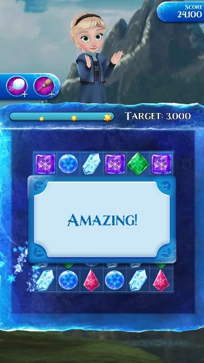 冰雪奇缘冰纷乐汉化版画面延续迪士尼水准,精美细腻,呈现逼真冰雪主题与特效。目标多样,除得分通关,还有清除雪块等趣味目标。伙伴系统丰富,随剧情解锁角色,各有专属技能。游戏性、画面及体验出色,是同类标杆之作。