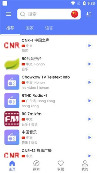 2. 具备多种便捷查找方式,可按收听历史、国家列表等快速定位。