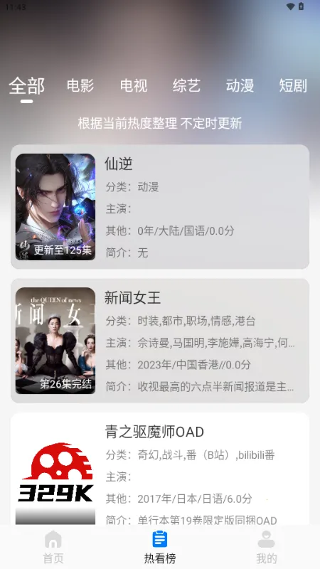 329K影视是一个综合型的追剧网站,以在线观看为主,提供丰富的影视资源,涵盖电影、电视剧、综艺、动漫、短剧和纪录片等类别,累计约有16万部影片。在观影功能方面,329K支持投屏和弹幕功能,但弹幕数据较少。网站页面目前无广告,整体观影体验良好。虽然网站提供了安卓客户端的下载,但是经过测试无法正常进入和使用,所以可以暂时忽略安卓端。整体来说,影片数量也还可以,页面暂时无广告,作为日常在线观看没什么压力。如果喜欢弹幕客户端的话,估计还要等等或选择其他网站产品。 329K影视怎么注册,怎么登录?点击同意软件公告,点击我的,点击登录,输入账号密码完成注册和登录,没有账号的可以去注册一个。329K影视看综艺?点击综艺栏目,在这里挑选自己喜欢的综艺,点击立即播放综艺,完成播放即可。329K影视怎么投屏?点击右上角TV功能,在这里将手机与投屏设备连接同一个wifi,完成投屏即可。