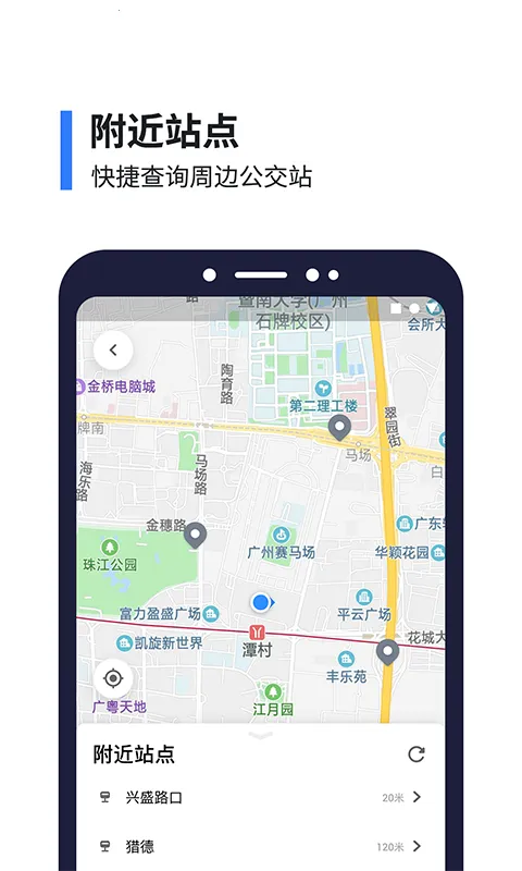 1. 附近站点清晰可见,能快速查看途经的公交地铁路线以及到站时间,让您对周边交通情况一目了然。