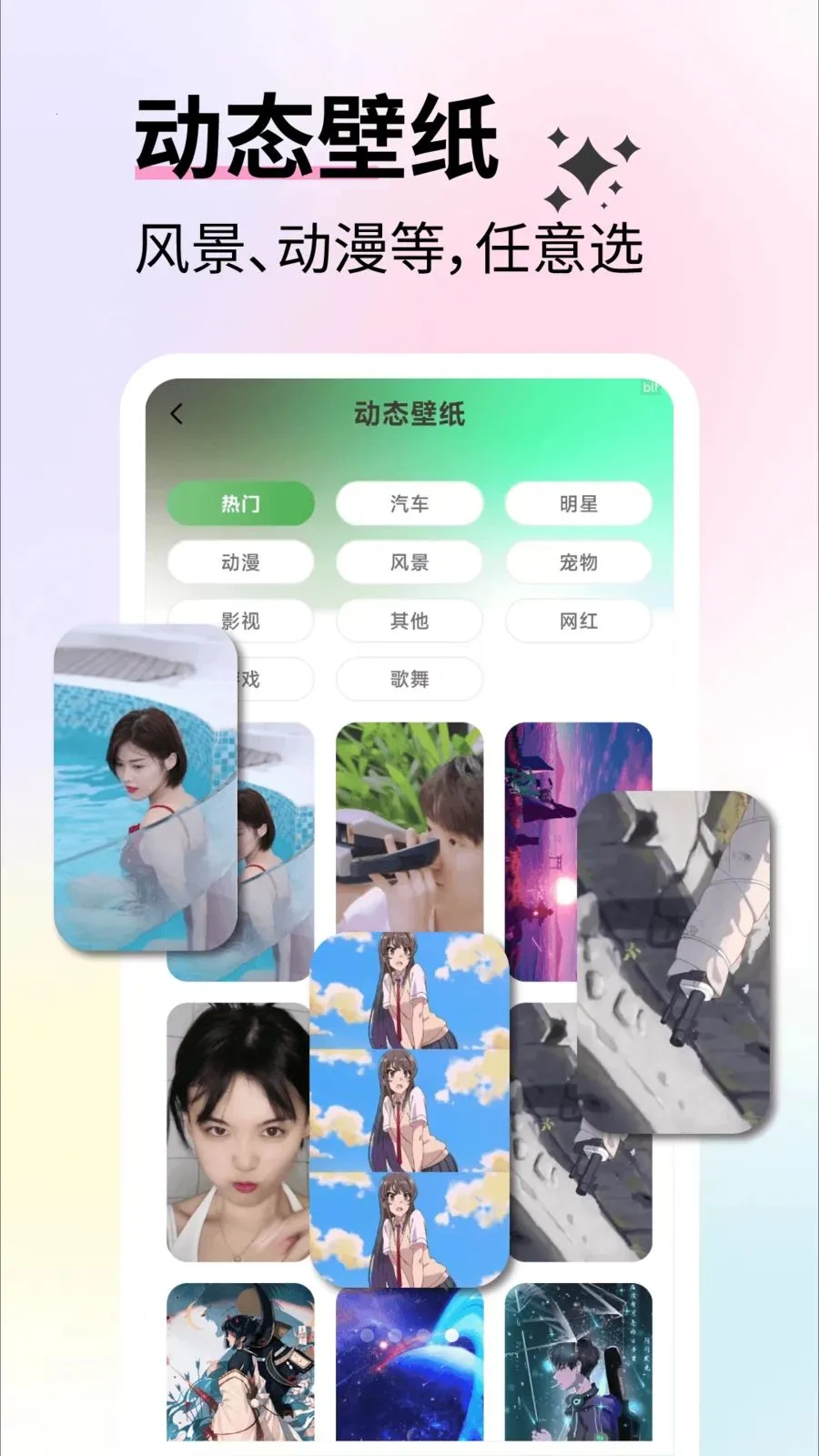 智能适配机型,可实现全屏显示,使壁纸与手机屏幕完美契合,呈现出更美观的视觉效果,带来绝佳的使用体验。