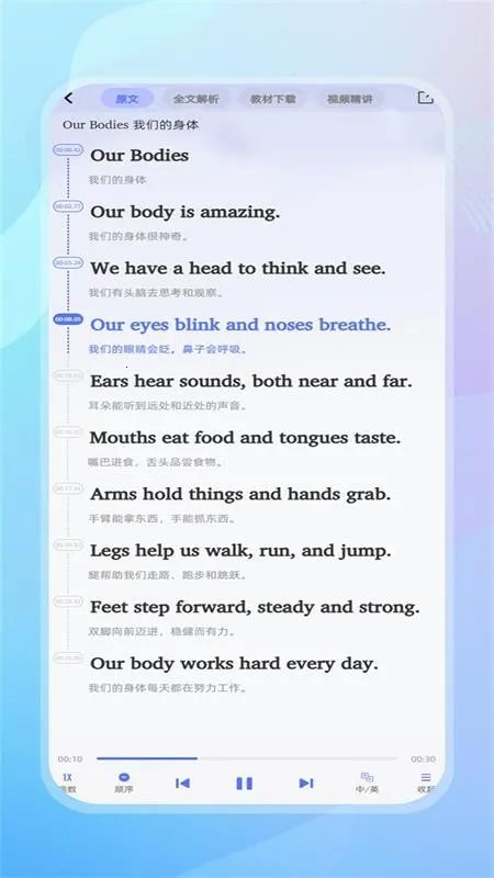 智能纠音是一大特色。它能精准定位底层发音弱点,搭配标准纯正音频,支持中英对照与逐句跟读,让学习者每一次开口都更自信,不断提升语言水平。