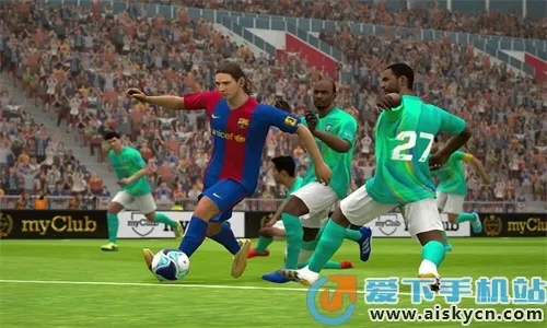 6、在球场上你需要控制自己的球员完成铲球、冲刺、传球等一系列动作来完成射门并得分。